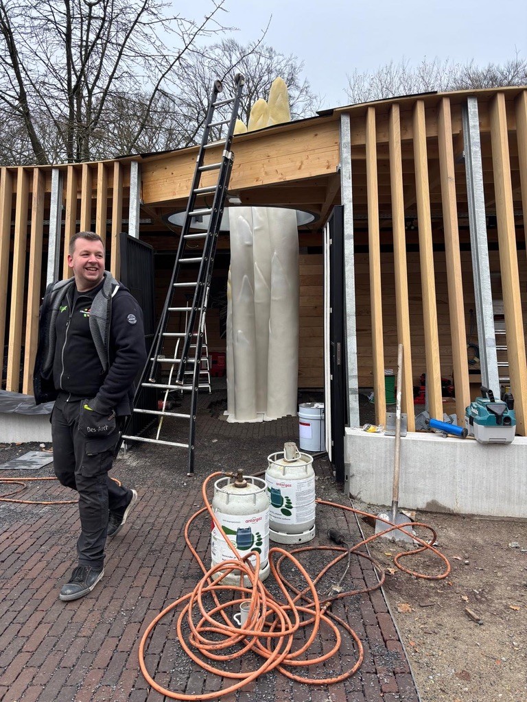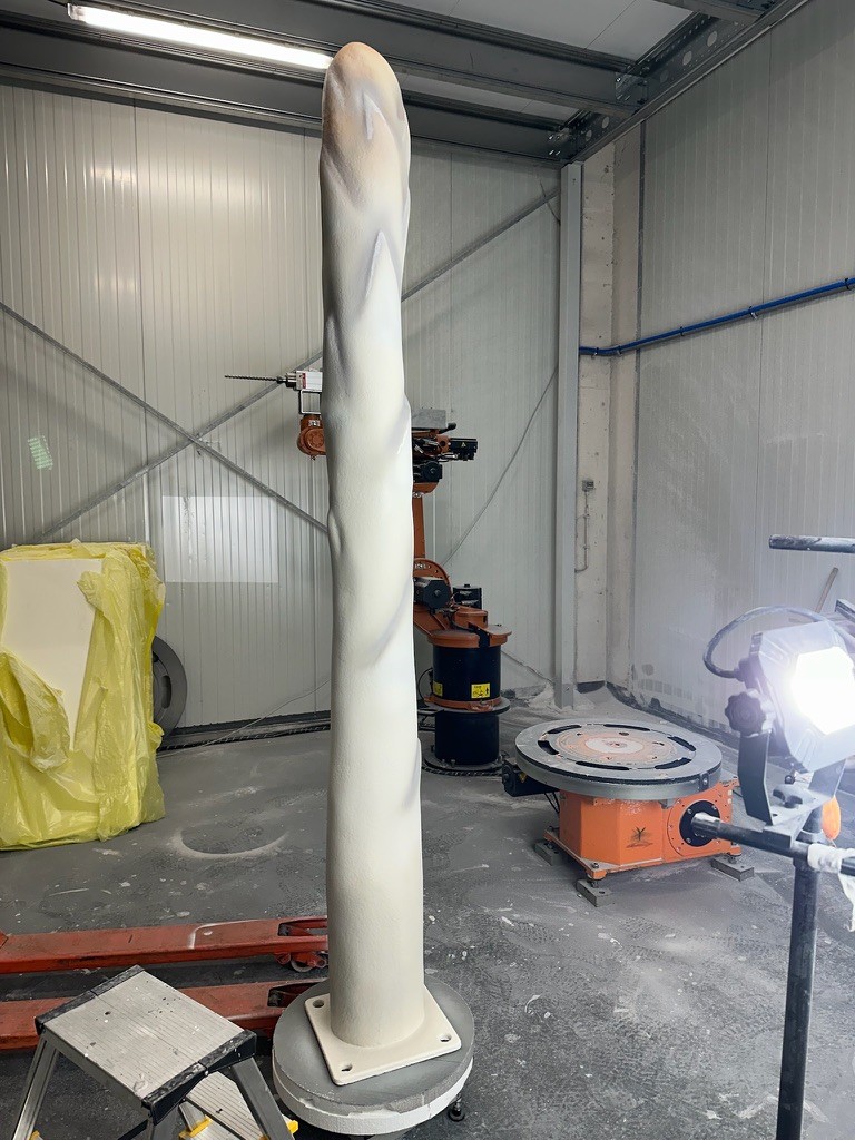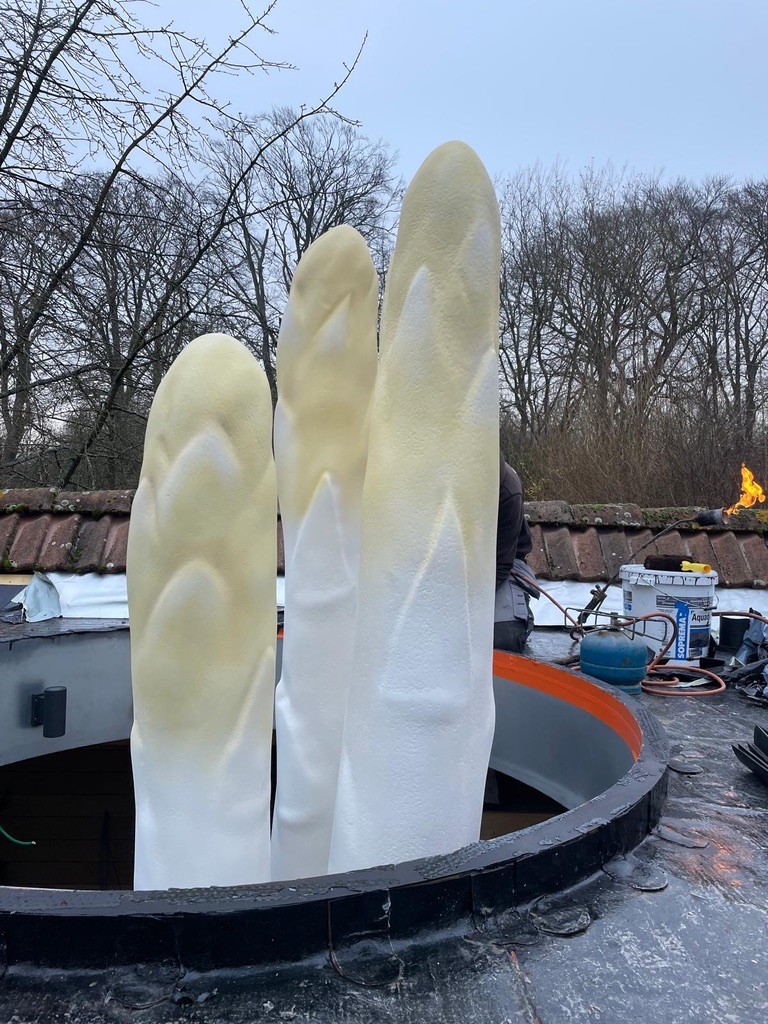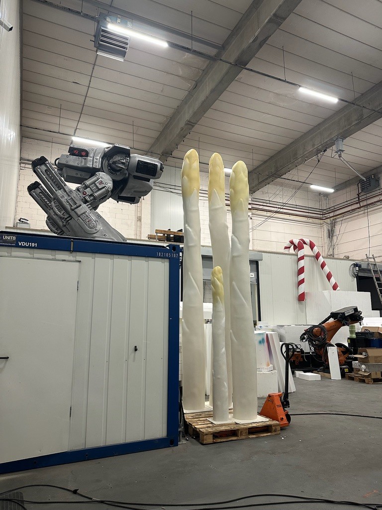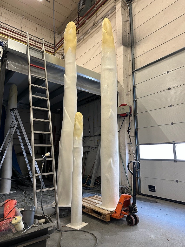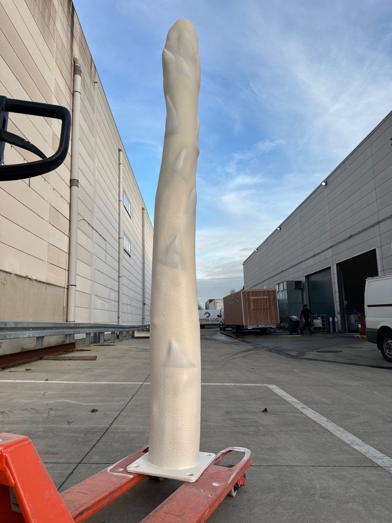 Each element was crafted with precision to capture the natural shape and character of asparagus, combining aesthetics with structural durability. The installation is built for outdoor use, ensuring resistance to weather conditions and long-term performance.