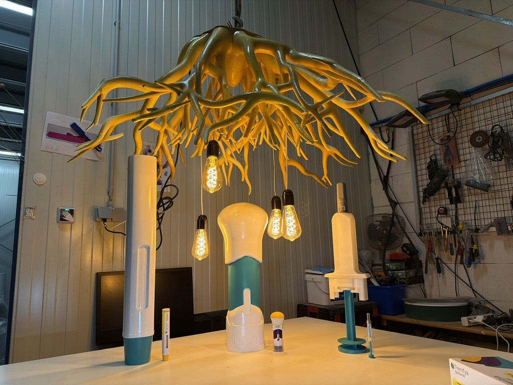 A unique artistic lighting installation inspired by organic forms and medical aesthetics.
