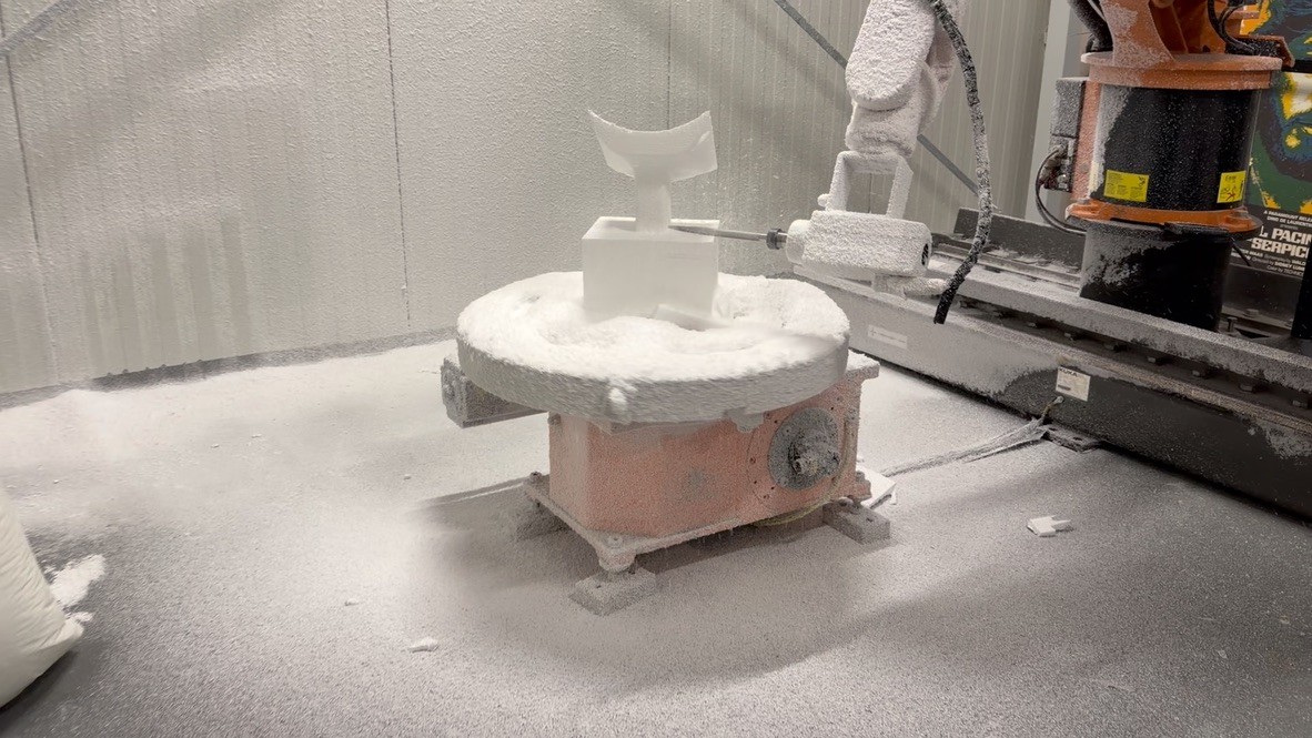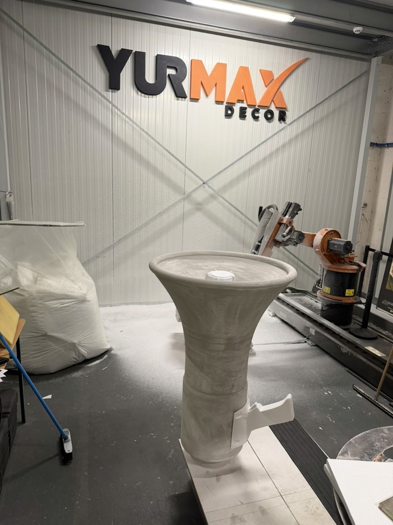 Each piece is precisely manufactured using robotic milling with KUKA technology, ensuring perfect geometry and a clean, high-quality finish. The construction combines lightweight materials with durability, making it suitable for both indoor and outdoor installations.