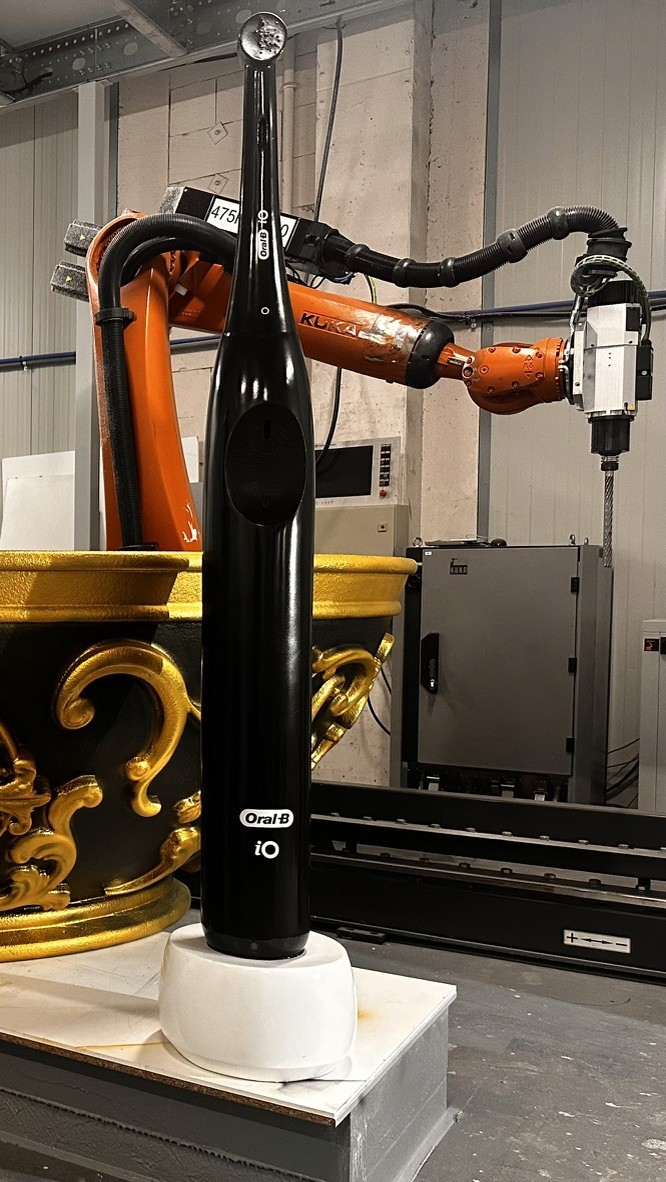 A large-scale sculptural replica of the Oral-B electric toothbrush, designed as a central visual element to capture attention and create a strong “wow-effect”.