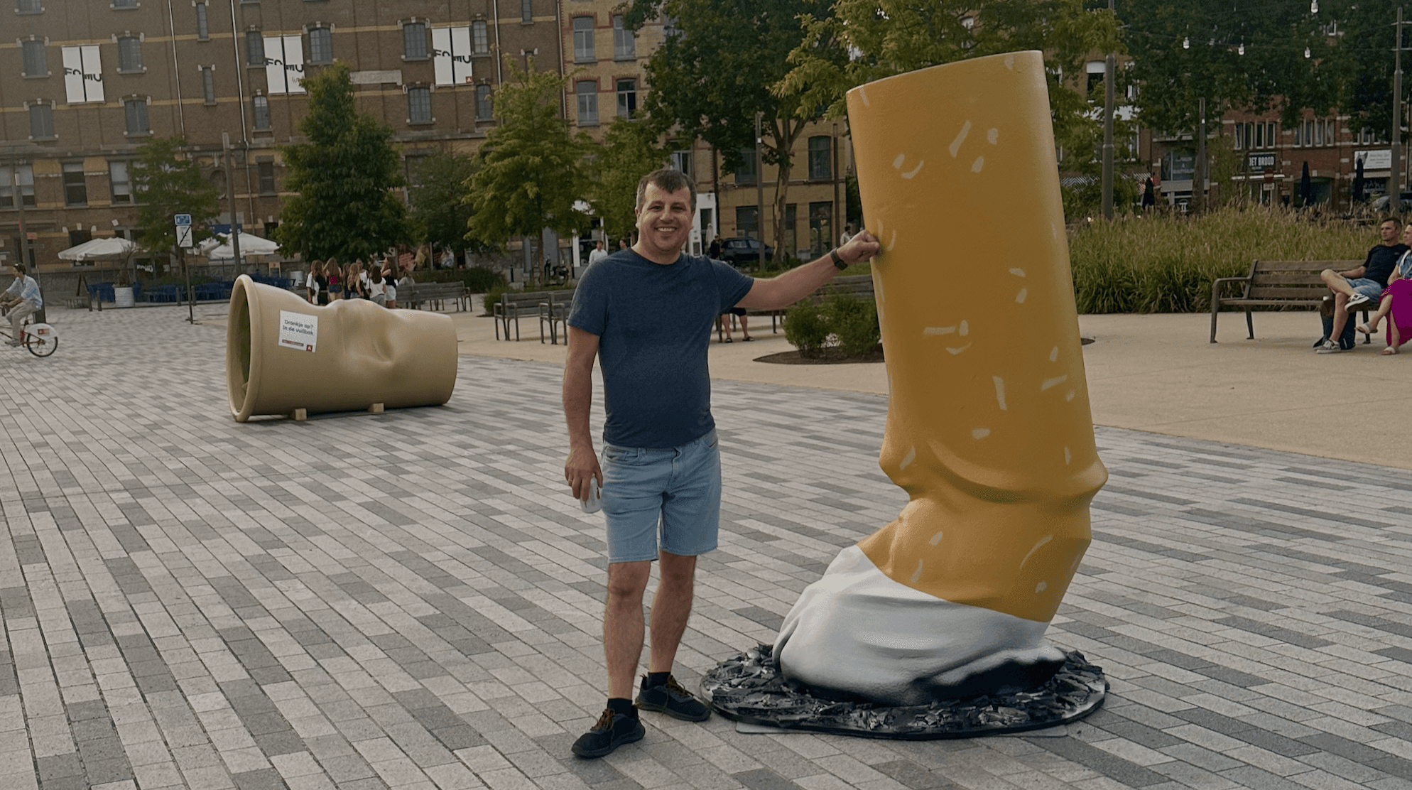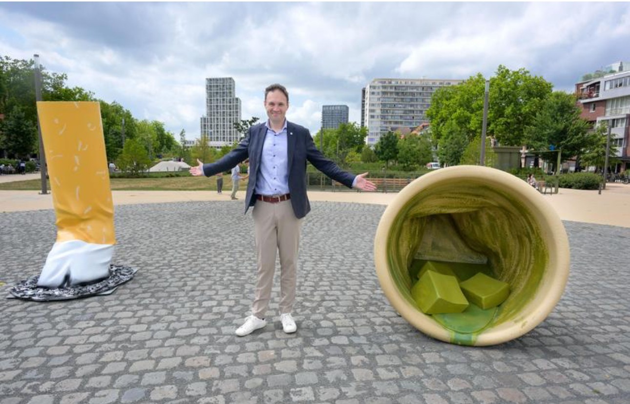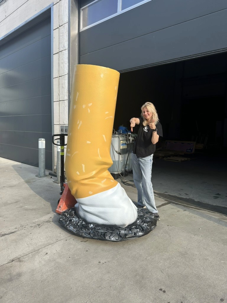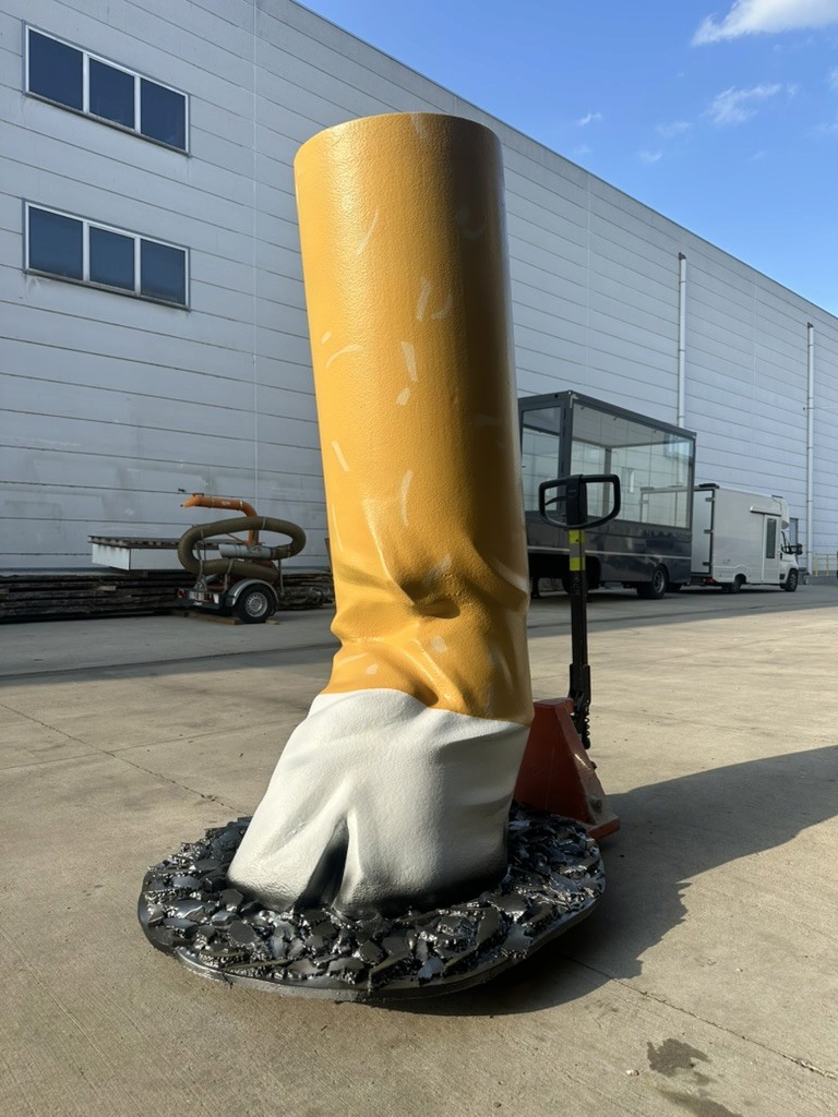 By transforming everyday objects — a cigarette butt and a disposable cup — into oversized sculptural elements, the project shifts perception and creates an immediate emotional response.
